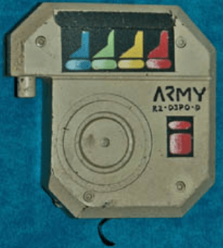 A nonfunctional prop “drug dispensers” made for the premiere episode of Star Trek: The Next Generation, “Encounter at Farpoint”.