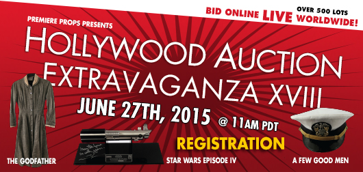Premiere Props Hollywood Auction Extravaganza XVIII is set to take place on Saturday June 27, 2015. The Extravaganza will be featuring around 600 lots of movie props, costumes, autographs and other Hollywood memorabilia. Those partcipating have an opportunity to own Star Trek props, early Hollywood photograph collections and autographs, amazing props and costumes from Pirates Of The Caribbean, Mad Max, Woman In Gold, Harry Potter, Underworld, Jurassic Park and more!