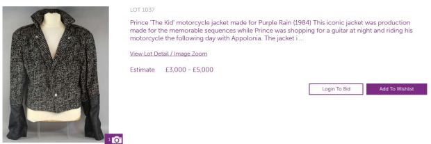 - Prince ‘The Kid’ motorcycle jacket made for Purple Rain (1984).