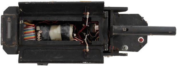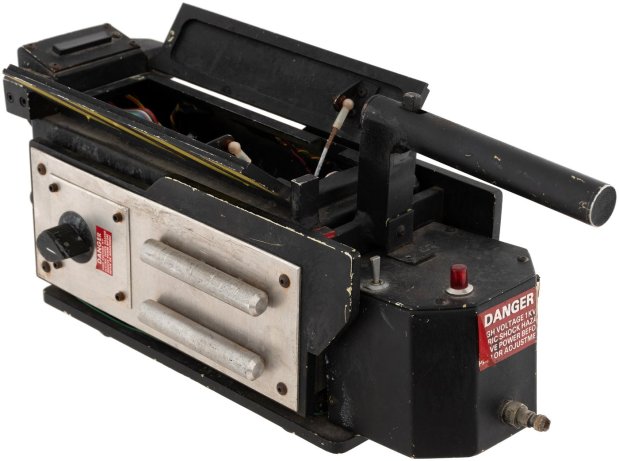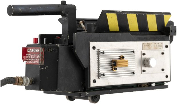The Ghost Trap comes complete with electrical wiring and connections, hydraulic foot pedal, and remote control box that allows opening and closing of the trap’s doors. The concept for the trap was conceived by Aykroyd and this example is one of four manufactured by special effects artist Chuck Gaspar. This prop was photographed for special effects sequences and was screen-used before finding residence with executive producer Michael C. Gross.