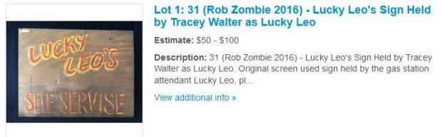 Rob Zombie fans will be pleased to see over a dozen or more lots of props used in the 2016 horror/thriller film “31”. This is a rare opportunity to obtain something connected to the famed musician , writer and director.