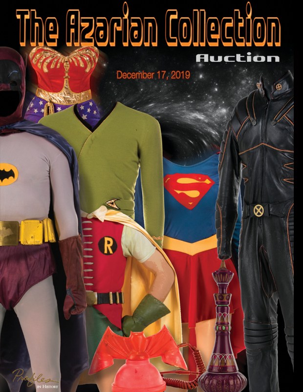 What an amazing collection John Azarian has put together over the past few decades. I have seen many of the various appearances John has made over time on television himself showcasing his passion for collecting props and costumes from the 1960’s. Most of those appearances you can find on YouTube fairly easy additionally visit the official site https://www.theazariancollection.com. With this auction it seems the time has come for the television and movie history in this collection to find new homes that will enjoy and preserve them.