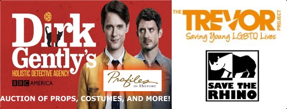 AN AUCTION OF PROPS, COSTUMES, AND MORE TO BENEFIT THE TREVOR PROJECT & SAVE THE RHINO INTERNATIONAL FROM THE INSTANT CULT CLASSIC TV SHOW DIRK GENTLY’S HOLISTIC DETECTIVE AGENCY