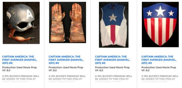 - Captain America’s Combat Helmet –As worn by Chris Evans in Captain America: The First Avenger (2011). Anticipated sale price: $20-30,000.