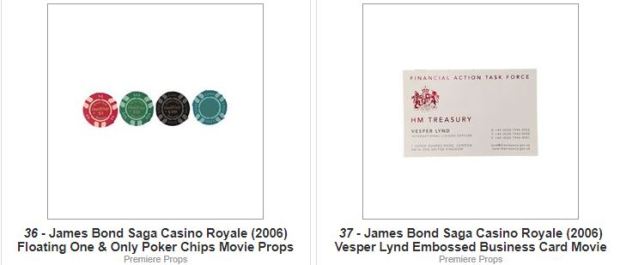 - JAMES BOND CASINO ROYALE James Bond’s (Daniel Craig) Visa card, Vesper Lynd’s (Eva Green) business card, blueprints, casino plaques and poker chips