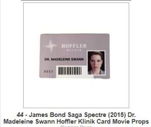 - SPECTRE James Bond’s (Daniel Craig) tuxedo shirt and Dr. Madeleine Swann’s (Léa Seydoux) Hoffler Klinik card