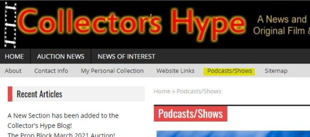 By popular request I have added a new section to the Collector’s Hype Blog. The Podcasts/Shows sections will feature links and information to current Podcasts ,YouTube Shows, On Air Television and On Demand. Of course the topics in these shows is specific to original film and television memorabilia.