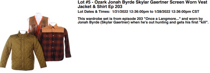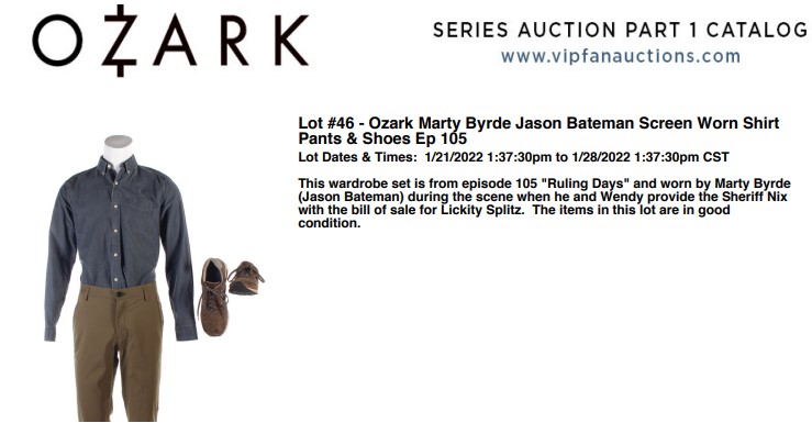 There is also a Part 2 of the Ozark Series Auction that will take place “TBA“, I suspect that part 2 will feature items from the final season 4. Check back here for updates.