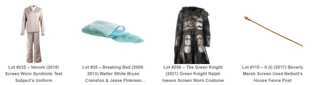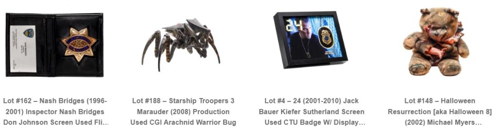 You will find items from Breaking Bad, Halloween, Starship Troopers, IT, Nash Bridges, Alita Battle Angel, Batman Forever, Bill & Ted Face The Music, True Blood, The Green Night and so much more!