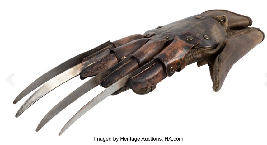 Far smaller but no less sharp and lethal was Freddy Krueger’s razor glove used by Robert Englund in A Nightmare on Elm Street 3: Dream Warriors, which realized $112,500.