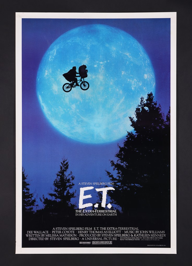 - E.T. THE EXTRA TERRESTRIAL (1982) US One-Sheet “Bike Over The Moon” Style (27″ x 41″), 1982 – est. £1,000 – £2,000 ($1,150 – $2,300)