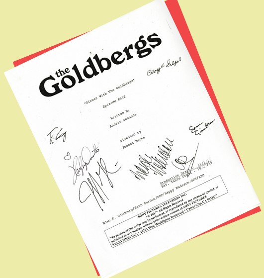 This is an online only auction taking place exclusively on the Propstore website is open for bidding starting on Monday April 24 and bidding concludes on Monday May 15, 2023. Register for the auction today for a chance to win a cast-signed script from the Season 5 episode “Dinner with the Goldbergs”, pictured below.