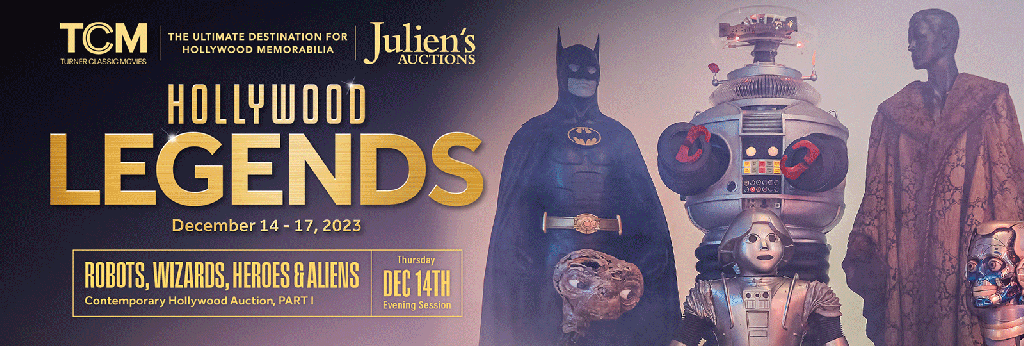 Julien’s Auctions and Turner Classic Movies (TCM) just announced the items in the upcoming Hollywood Legends: Robots, Wizards, Heroes & Aliens LIVE auction event. This will be a four day LIVE auction beginning on Thursday December 14th, and concluding on Sunday December 17 2023, in Beverly Hills and online at JuliensLive.com.
