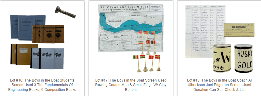 The sports drama film The Boys in the Boat have landed at VIP Fan Auctions offer may costumes and props. This auction is broken up into two separate weeks with new lots for each week. The dates are January 9-23, 2023 taking place only on the VIP Fan Auctions website, see links.