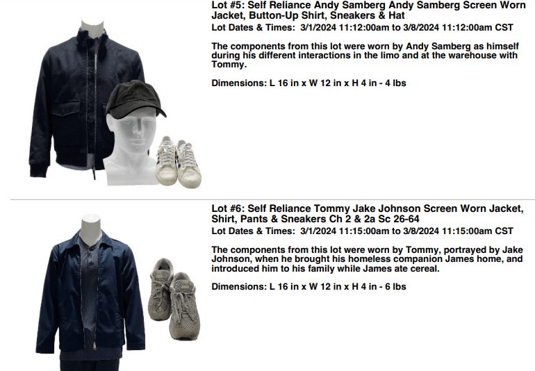 Bidding will be open for one week only exclusively at the VIP Fan Auctions website. The Self Reliance movie auction has 29 lots with all the lots being used by the main cast. Each item sold comes with a studio certficate of authenticity. A buyer’s premium of 25% will be added to all winning bids. Payment Plans are available visit the VIP Fan Auctions website for more information.