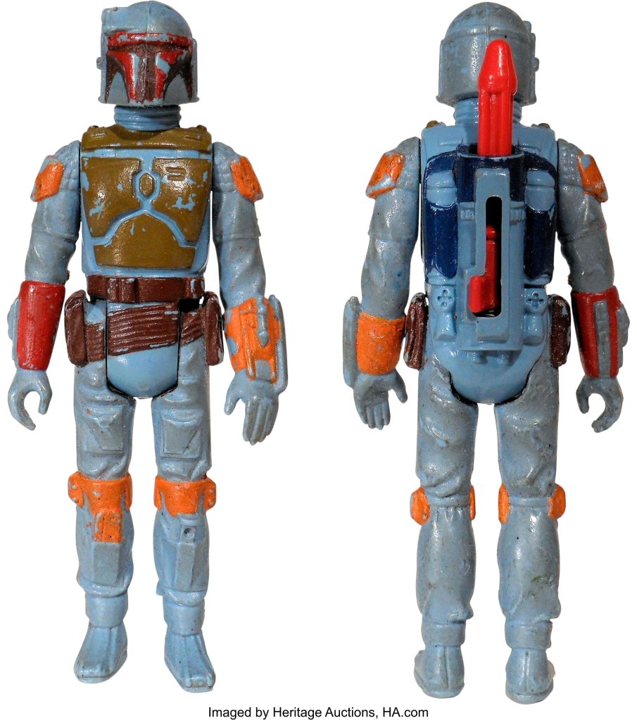 “One of only two examples known, this hand painted figure is still unique in its class,” Rachfal writes, as it’s the only one with its head and appendages painted gray. This AFA-graded, CIB-authenticated figure has been so thoroughly examined that hobby historians can pinpoint where it was made (“Kenner’s 10th floor at the Kroger building” in Cincinnati), how it got out (“it was salvaged from a box of discarded toys deposited there for employees to take home”) and where it eventually landed (with Justin Kerns, revered among Boba Fett-ishists as he once had nine unique survivors from the discarded lot).