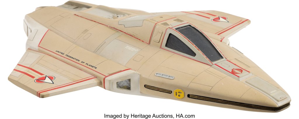 There are also numerous other Jein-made Trek models in this auction, including the Academy trainer craft filming miniature from The Next Generation episode “The First Duty” and, from Deep Space 9, the USS Saratoga’s Escape Pod 10.