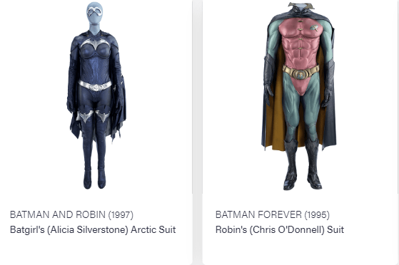 - Legendary costumes worn by actors portraying Batman and his allies.