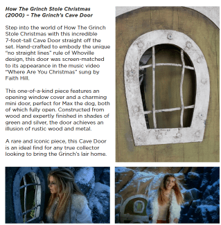 One of the main attractions is the one-of-a-kind display of the Hero Grinch Costume as worn by actor Jim Carey in the iconic 2000 holiday film How the Grinch Stole Christmas!