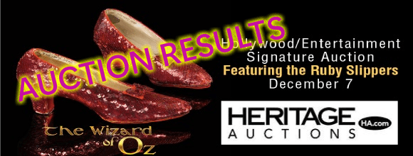 That single pair of shoes also helped Heritage’s December 7 Hollywood/Entertainment Signature® Auction set the record for an entertainment auction: $38,615,188. That shatters the $22.8 million realized during the 2011 Debbie Reynolds auction held by Heritage Auctions Executive Vice President Joe Maddalena.