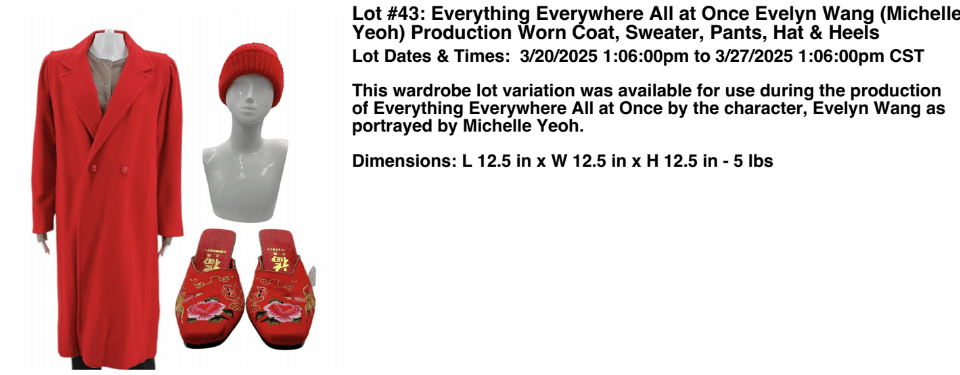 Some titles represented in this auction event include: Challengers, The Saw Films, The Strain, Red One, Everything Everywhere All At Once, Civil War, Hell Fest, Falling Skies, Defiance, Charmed, Doom, The Departed, Knives Out, The Hills Have Eyes, The Joker and more.