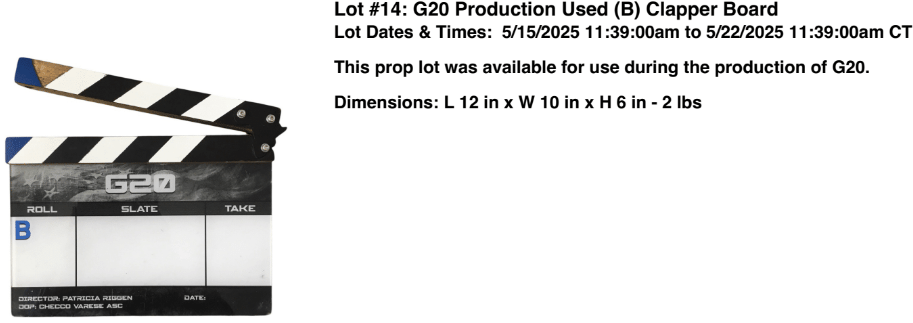 This will be a two-week auction of 138 items starting on Thursday, May 17, 2025. The first week will feature lots 1-69, showcasing a diverse collection of unique items that fans and collectors will not want to miss. Each lot has been carefully selected to appeal to various interests, ranging from memorabilia to exclusive collectibles. Week two will wrap up the auction with lots 70-138, where even more exciting treasures will be available to the highest bidders. Bidding will take place on the VIP Fan Auctions website, a secure platform where you can view all the lots of the G20 auction, make your bids, and track your favorites in real time. G20 is currently streaming on Amazon Prime.