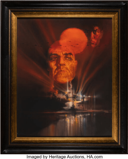 There is some extraordinary original artwork in this auction, the first glimpse of posters that would become as iconic as the movies they were meant to advertise. In a landmark offering of original movie poster art, Heritage Auctions will present 12 striking large-format paintings by legendary illustrator Bob Peak, including key art from Rollerball, Excalibur, The Comfort of Strangers and his career-defining masterpiece for Apocalypse Now. These vibrant, cinematic works, consigned by Peak’s family, showcase the bold style that revolutionized film advertising in the 20th century. At the center is Peak’s iconic mixed-media artwork for Apocalypse Now — a haunting synthesis of Brando, Sheen and the film’s fever-dream intensity — widely considered the most important piece of movie poster art ever to reach the auction block.