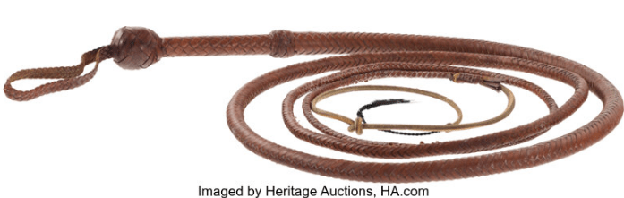 Harrison Ford’s Indiana Jones and the Last Crusade Screen-Matched Signature Bullwhip Presented to HRH Prince Charles at the Royal Premiere, 1989