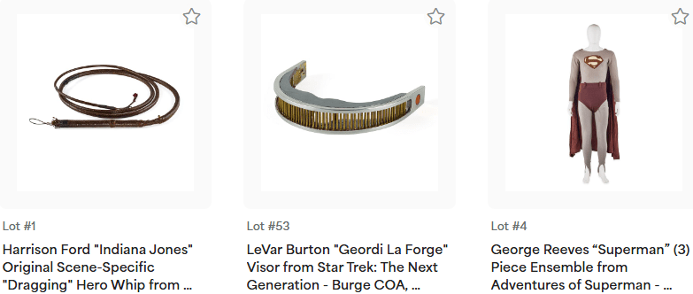 This inaugural event showcases an impressive collection, featuring 201 lots that span a wide array of genres and decades of Hollywood television and film history. Collectors and fans alike will find a treasure trove of items available for bidding. Some of the highlighted pieces include the iconic Harrison Ford “Indiana Jones” Original Scene-Specific “Dragging” Hero Whip from the beloved classic Raiders of the Lost Ark, as well as George Reeves’ memorable “Superman” costume from the 1952 Adventures of Superman series.