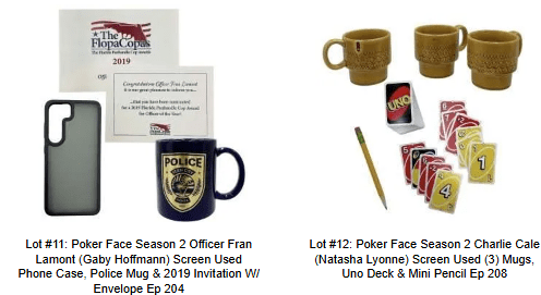 The Poker Face Season 2 auction is currently underway offering 109 lots in all. Week one will run September 2-9 featuring lots 1-54, Week two will take place September 9-16, 2025 featuring the final lots 54-109. To view all the lots available for bidding, as well as to register and place bids be sure to visit the VIP Fan Auctions website.