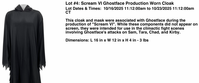 This is a perfect time of year to have a auction of items from a hit horror film. Spyglass Media Group and VIP Fan Auctions have partnered to offer another amazing opportunity to own screen-used wardrobe and props from the hit 2023 film Scream VI. This highly anticipated collaboration brings fans closer to the cinematic experience by providing a chance to acquire authentic items that were featured in the film.